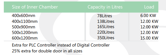 · The only size available is 400x 600 mm and by electric load shall be 18 KW to give fast Sterilization.
